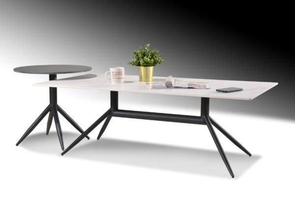 Material: TABLE TOP IN SINTERED STONE WITH BLACK POWDER COATED METAL FRAME