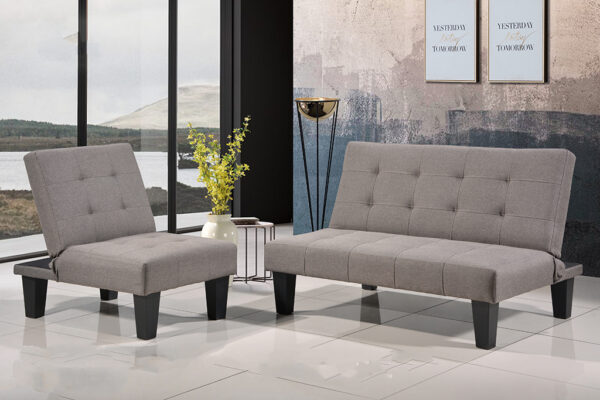 Material: FABRIC CUSHION WITH SILK FOAM AND SILK COTTON, PINE WOOD FRAME, S-SPRING AND ELASTIC BAND. LEG IN BLACK PLASTIC