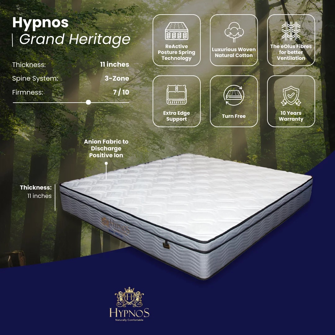 HypnosReActive™springs (Hypnos’ proven firm ReActive™spring system is expertly engineered to follow the contours of the body andalleviate pressure points. The more active turns in a spring, the greater itsability to respond to your unique shape, height and weight.)
